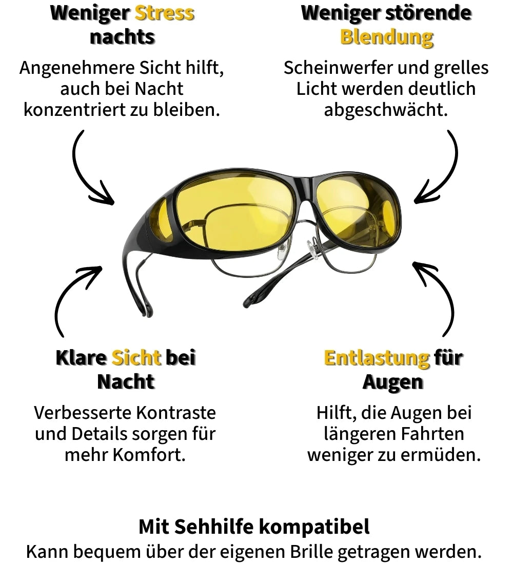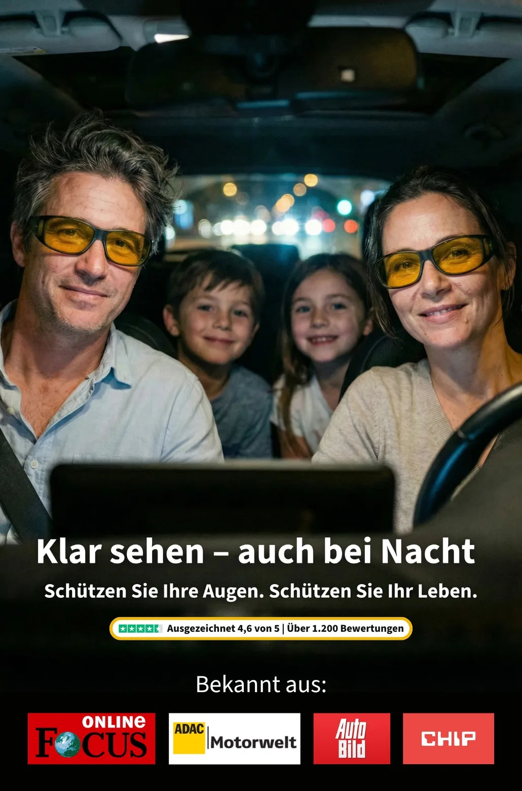 Die speziellen Gläser reduzieren störende Blendung, erhöhen den Kontrast und sorgen so für eine klarere, entspanntere Sicht – besonders bei entgegenkommenden Scheinwerfern.