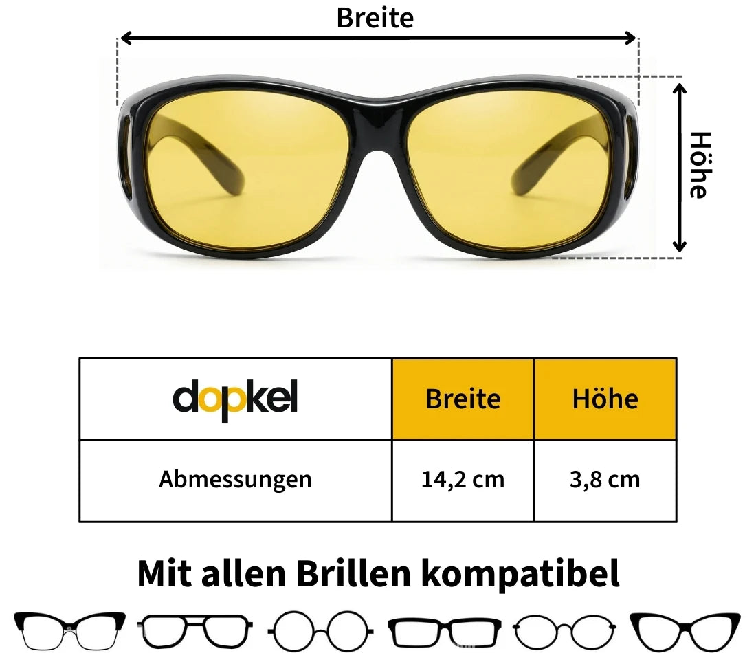 Ja. Die Dopkel-Brille ist so konzipiert, dass sie problemlos über einer normalen Brille getragen werden kann, ohne zu drücken oder zu verrutschen.