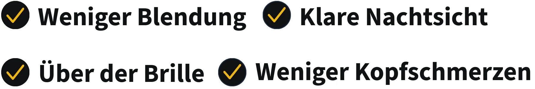 - Spürbare Reduzierung der Augenbelastung für entspannteres Fahren
